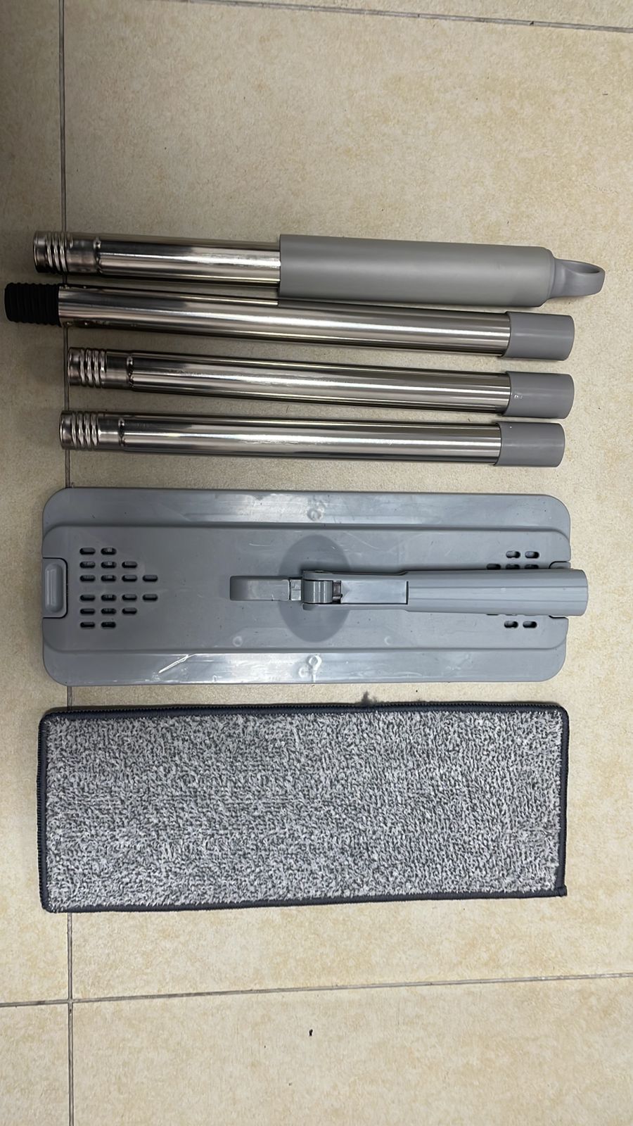 mopa y se pueden quitar y lavar rápida y fácilmente. Autoescurrido Con solo deslizar la barra hacia arriba y hacia abajo, puedes escurrir el agua y la suciedad en un minuto. Almohadilla de microfibra reutilizable La alfombrilla de microfibra flexible giratoria de