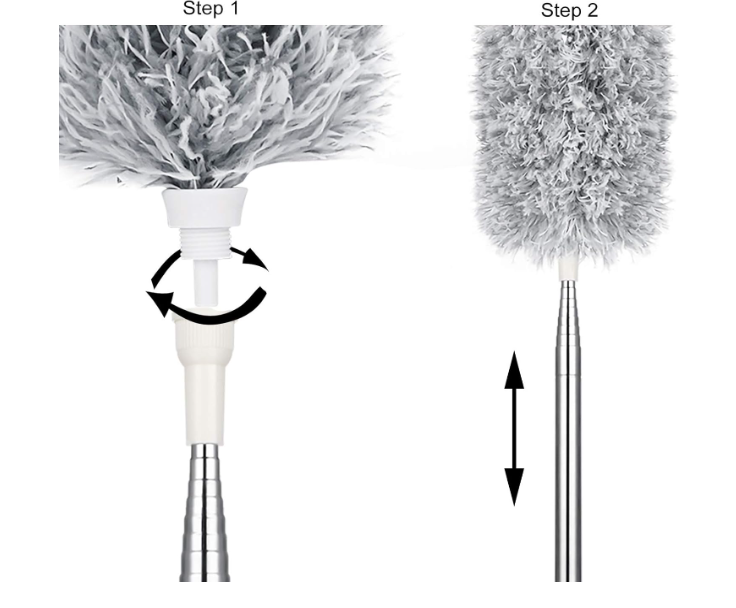 - Siete niveles longitud ajustable: no más puntos difíciles de alcanzar y esquinas polvorientas alrededor de la casa. Con este plumero completamente largo, ahora tienes el control de todo. Este plumero de microfibra se puede ajustar fácilmente, extiende el poste tanto como quieras dependiendo de la posición de limpieza, incremento de 9.5 pulgadas. La limpieza finalmente se hace fácil.
