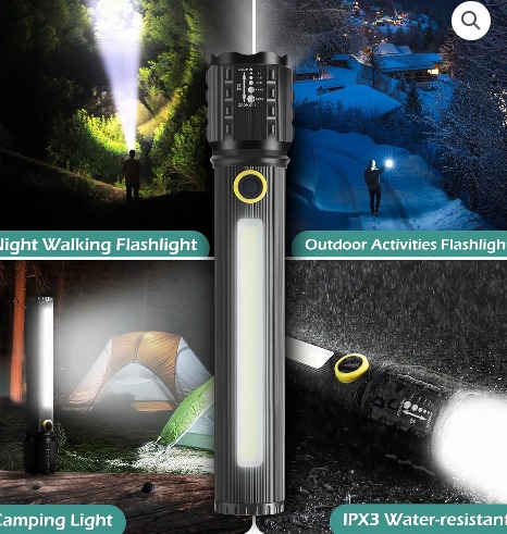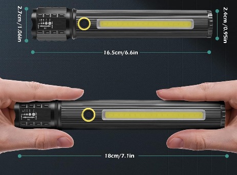 Linterna de mano de emergencia: Batería recargable integrada, batería de gran capacidad de 1200 mAh que puede soportar iluminación de larga duración. Puede iluminar hasta 4 horas consecutivas.