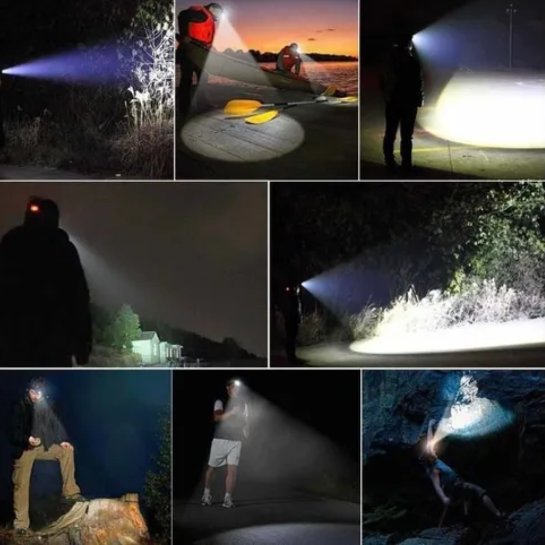 Linterna frontal superbrillante, con zoom e intermitencia.