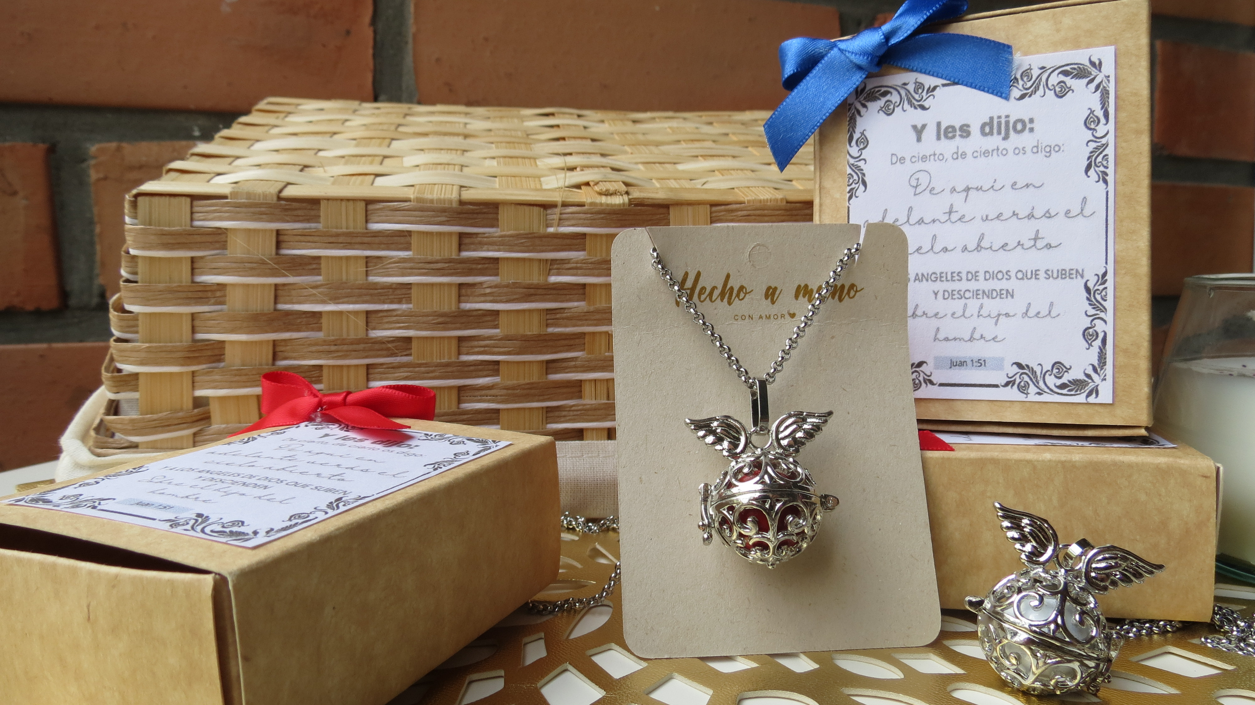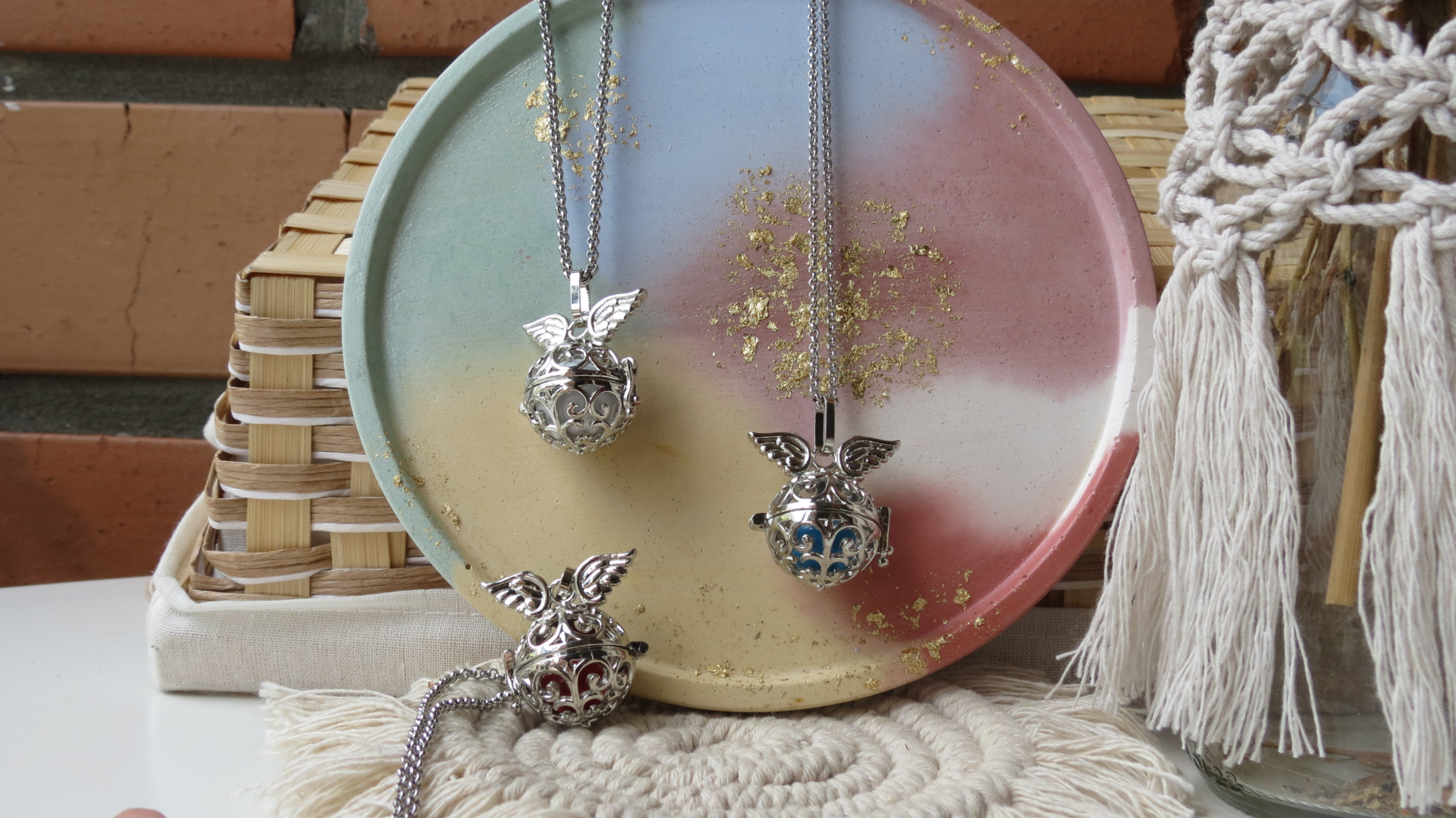 Nuestro llamador está fabricado en acero y tallado a mano este tiene una medida de 3cm Adentro lleva una esfera es un cascabel que emite un lindo sonido este llega de diferente color 😇
