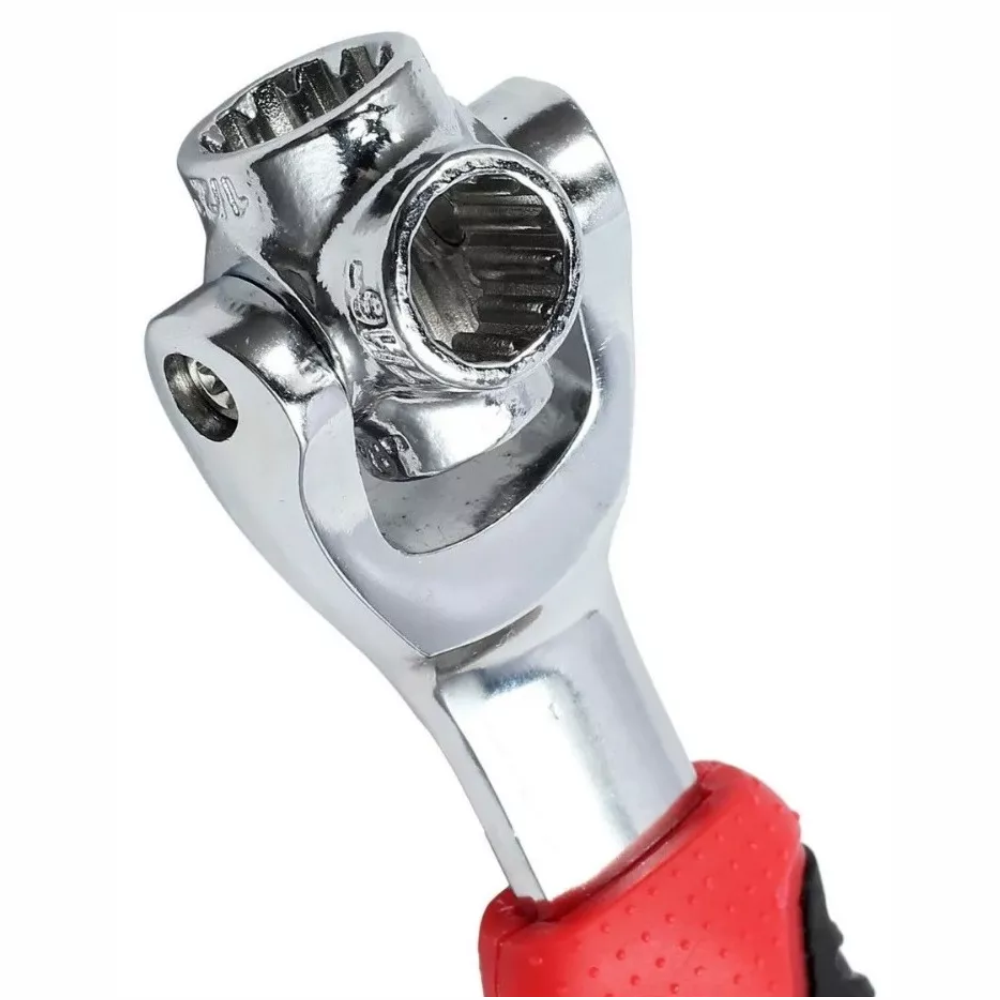 Esta herramienta de calidad profesional está diseñada con cabezal giratorio de 360° que cambia rápidamente al tamaño que necesites. No más dificultades para encontrar la cabeza de vaso del tamaño adecuado.No más tener que transportar cajas de herramientas pesadas. Con esta llave, deja de tener que adivinar qué herramienta necesitarás en el trabajo y hazlos de forma más rápida y fácil.