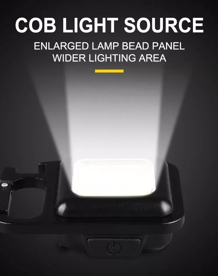 3 modos de iluminación: Nuestra linterna de llavero tiene 3 modos de iluminación: modo alto COB, modo bajo COB, modo estroboscópico COB,