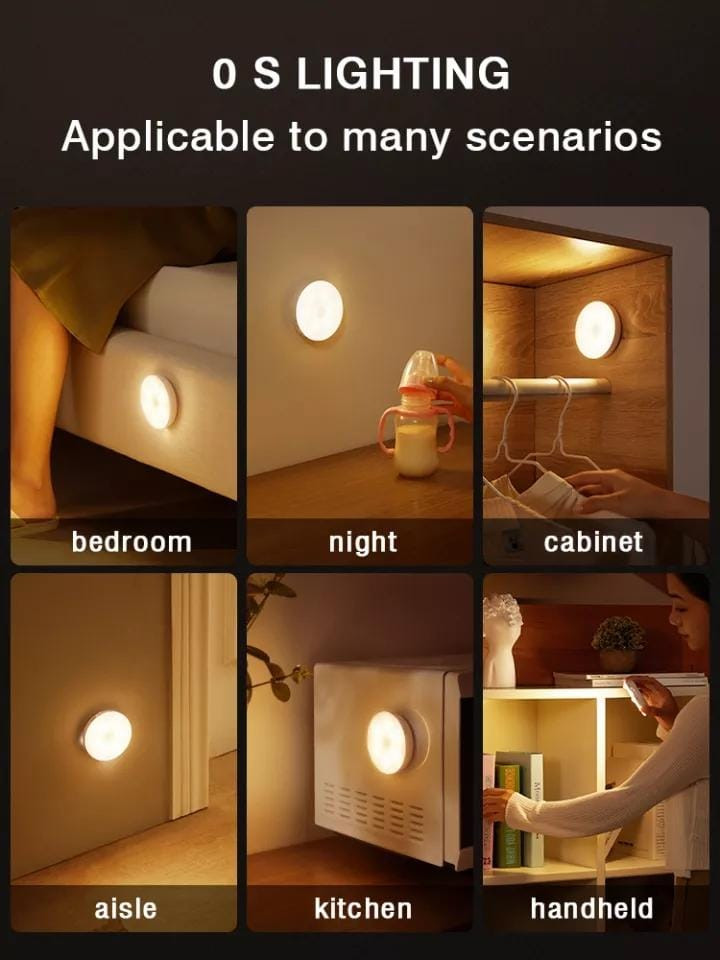 Luz nocturna con Sensor de movimiento recargable USB 0,6W 700mAh. Lámpara con 8 Diodos Led. Productos similares tienes 6 Diodos Led. @@El adhesivo que trae funciona muy bien en una superficie apropiada y limpia. La intensidad de luz de esta lámpara es apropiada para espacios pequeños que no requieren iluminación excesiva. @@Usos: closet, baño, armario, pasillo, escalera, dormitorio, habitación de bebé, sala de estar, sótano, puerta, entradas y otros lugares con necesidad de iluminación. @@Instrucciones de uso: @1. El producto no requiere cableado y es fácil de instalar. Puede ser utilizado en cuartos, armarios, closet, gabinetes, escaleras, o espacios con necesidad de iluminación.@2. Requiere trabajar con poca iluminación, es decir con oscuridad. En ambiente luminoso el dispositivo entrará automáticamente en modo inactivo y no encenderá. @3. En la noche, o en la oscuridad, cuando una persona ingrese al área de escaneo de 3 a 6 metros, la luz se encenderá automáticamente con la presencia de movimiento de una persona. @4. La luz se apagará automáticamente 25 segundos después de que la persona se vaya. @5. Se puede cargar con cargador USB de celular. La luz roja indicará que está cargando. Cuando la luz se apaga, indica que está completamente cargado. @6. El producto se puede montar y desmontar fácilmente de su base metálica-imán para su proceso de carga, después de pegar la cinta de doble cara. @@ESPECIFICACIONES:@Tipo de interruptor: sensor infrarrojo del cuerpo humano (interruptor automático) @Vida útil del LED: 30.000 horas o más @Fuente de alimentación: Batería de recarga (batería de 700 mAh. usando 6 veces por día, puede durar unos 50 días) @En el modo de espera se puede almacenar durante 90 días después de cargar completamente. @Tiempo de carga: aproximadamente 2 horas (cargando: señal roja, carga completa: señal apagada) @Potencia: 0,6 W @Voltaje: 5 V
