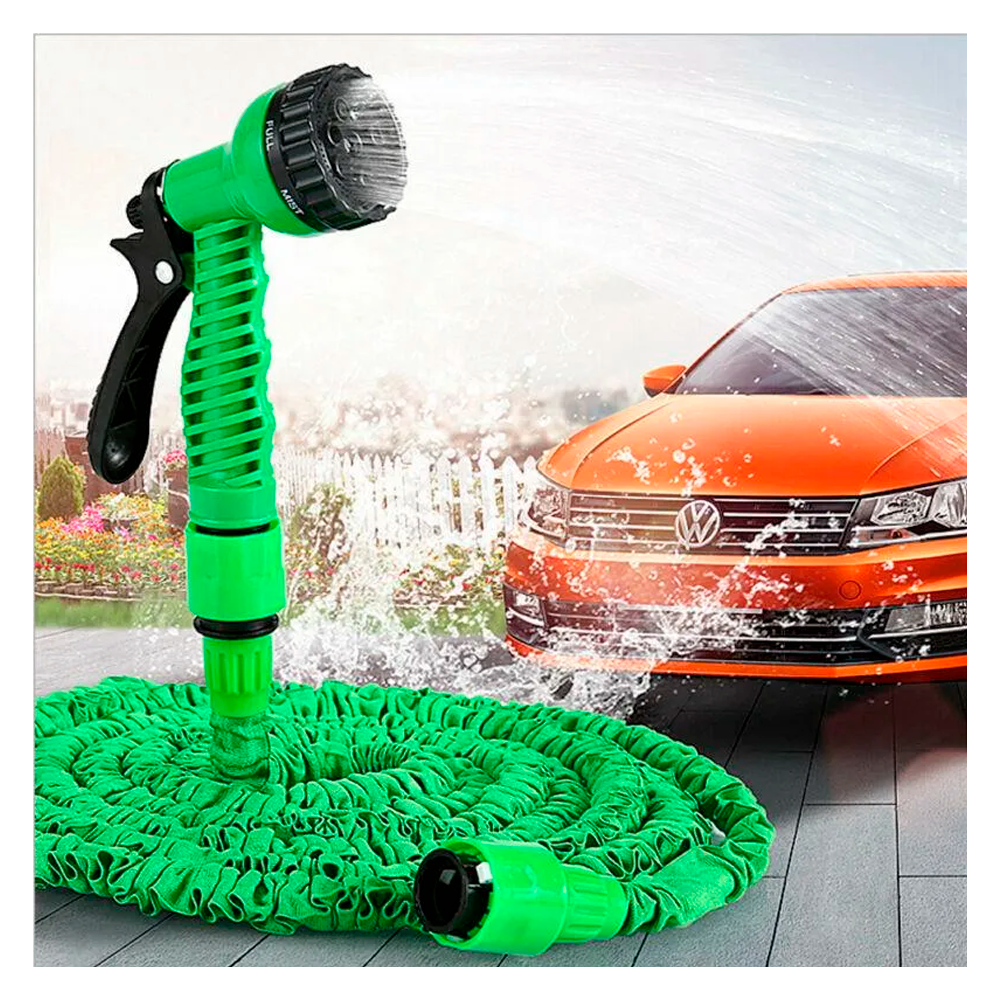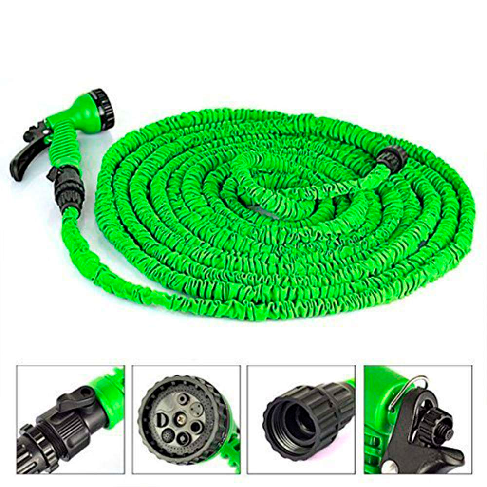 Descripción MANGUERA EXPANDIBLE 45 METROS Esta manguera de agua mide 15 metros y se expande hasta tres veces su tamaño, 45 metros, cuando se baja la presión del agua, pero vuelve a su longitud compacta original después de que el agua este afuera. Está diseñado para no enredarse, no torcerse o doblarse, es flexible, compacto y fácil de guardar. Incluye pulverizador multifunción de alta presión de 8 patrones. Fabricado con los conectores de latón, excelente resistencia a la corrosión y calidad duradera. Para prolongar su vida útil se recomienda no guardarla en lugares donde haya productos químicos, evitar el contacto con fuego y drenar siempre la manguera después de usarla.