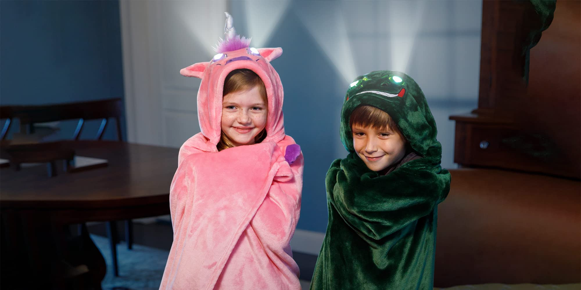 - Ojos iluminados por LED: nuestra manta súper suave con capucha tiene ojos ligeros LED para una doble diversión incluso en la oscuridad como una acogedora capa mágica con capucha