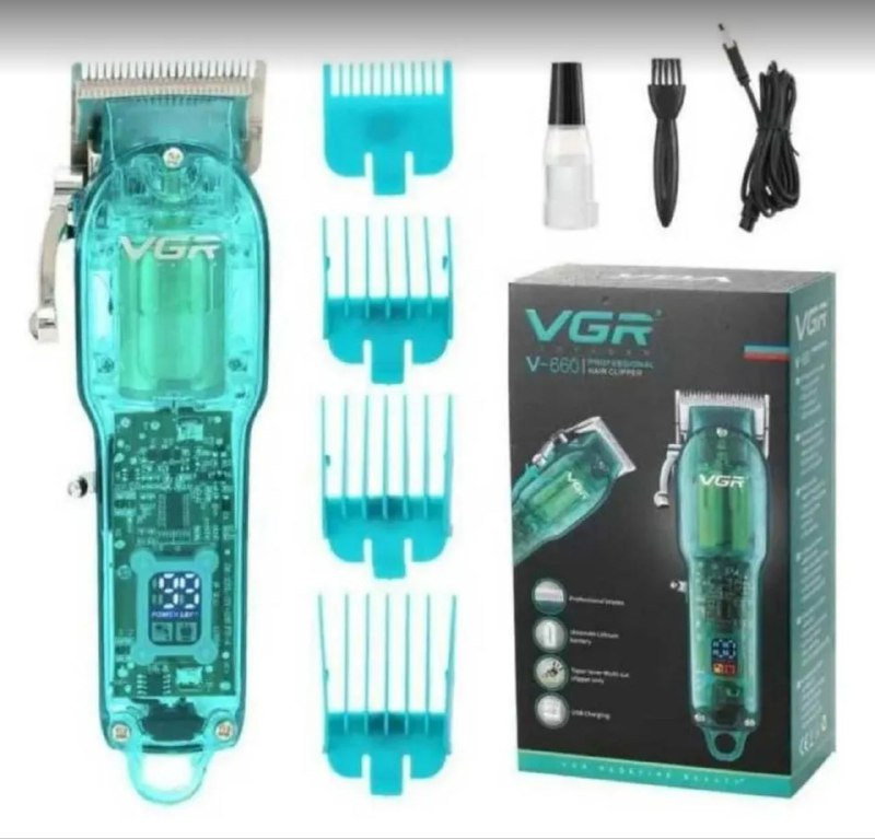 Máquina de peluquería VGR660 Maquina peluquera afeitadora pitillera VGR V-660 inalambrica material de la cabeza de corte acero inoxidable peso neto=341 g tamaño de el cuerpo= 28= 4 cm tiempo de carga 3h tiempo de uso 200 minutos voltaje=100-240v potencia 8W cargador USB universal de facil aseo y mantenimiento accesorios guias=36912 cepillo de limpieza liquido de curado funda protectora cable de carga USB manual