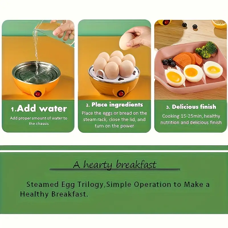 a Máquina Hervidor Cocedor Huevos Al Vapor Gallina My Dream en color amarillo es el complemento perfecto para tu cocina. Con una potencia de 350 W, este hervidor cocedor te permitirá preparar deliciosos huevos al vapor de manera rápida y sencilla. Su capacidad de 0.25 L te permitirá cocinar hasta 7 huevos a la vez, ideal para compartir en familia o con amigos. Además, cuenta con un único programa de cocción, asegurando resultados perfectos en cada uso.