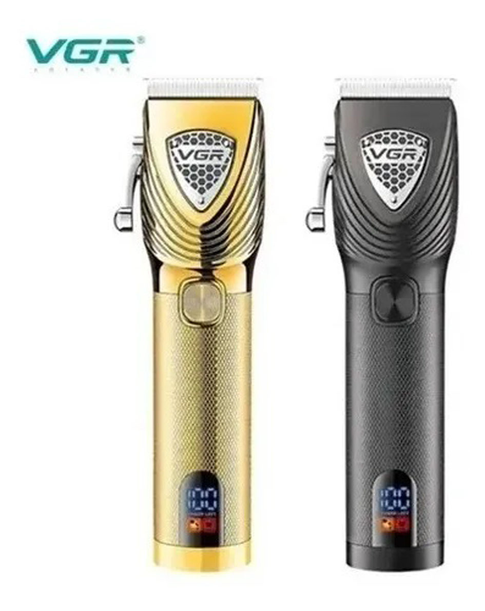 Máquina para cortar pelo profesional marca VGR recargable con indicador de batería, la batería tiene una duración de 3 horas, sus cuchillas en acero inoxidable hacen que su corte sea más preciso y su motor de alta revolución es muy silencioso, tiene el peso adecuado para que sea cómoda de manejar, el cable con el cual se carga se puede conectar a cualquier cabeza de celular para que sea fácil y rápido de cargar.