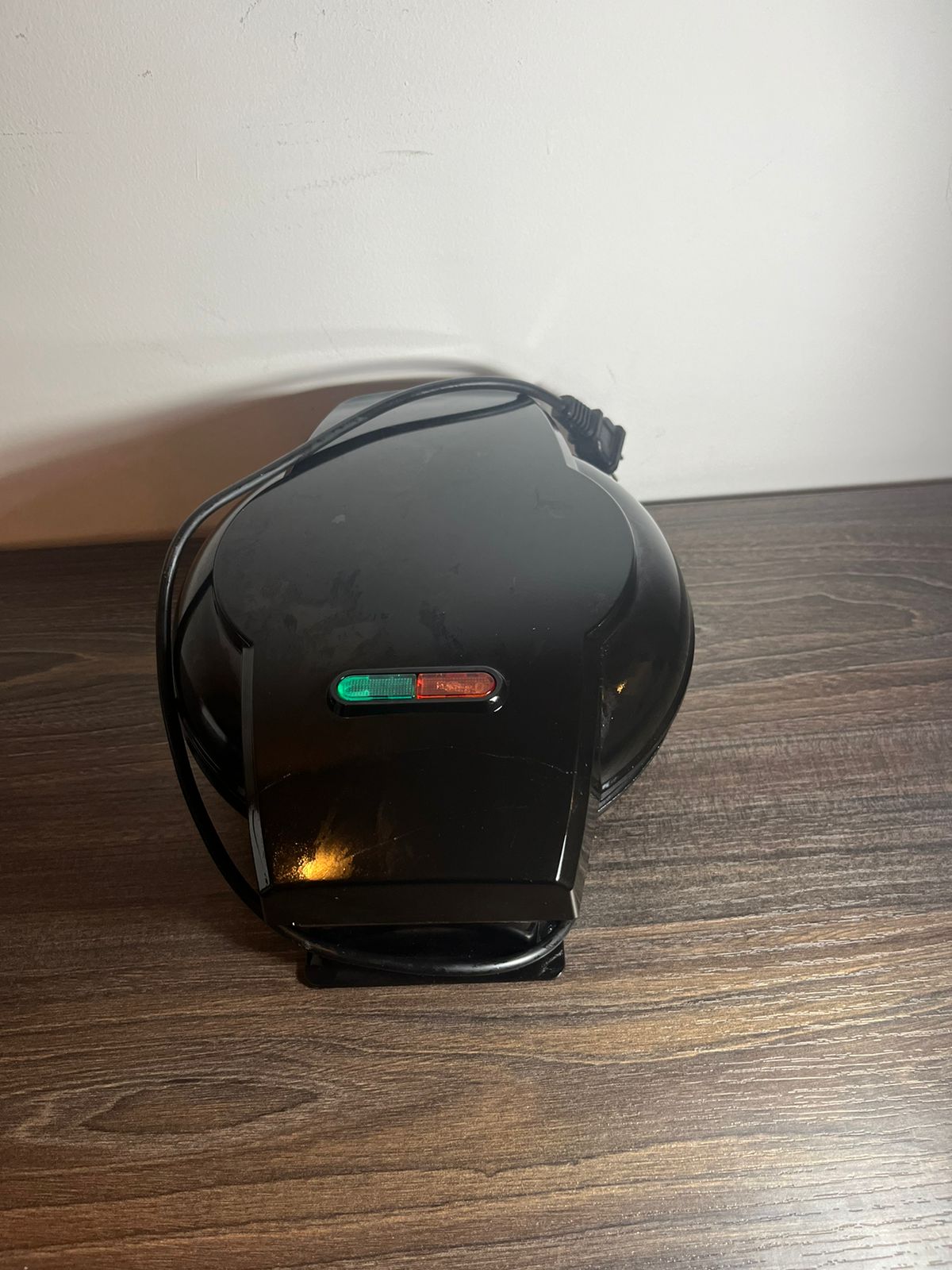 Esta máquina está diseñada con un mango de tacto frío, un pestillo de bloqueo y pies antideslizantes para un funcionamiento seguro y cómodo. También tiene una luz eléctrica y una lista de luces para informarle cuando la máquina está encendida y cuando están listas las rosquillas.