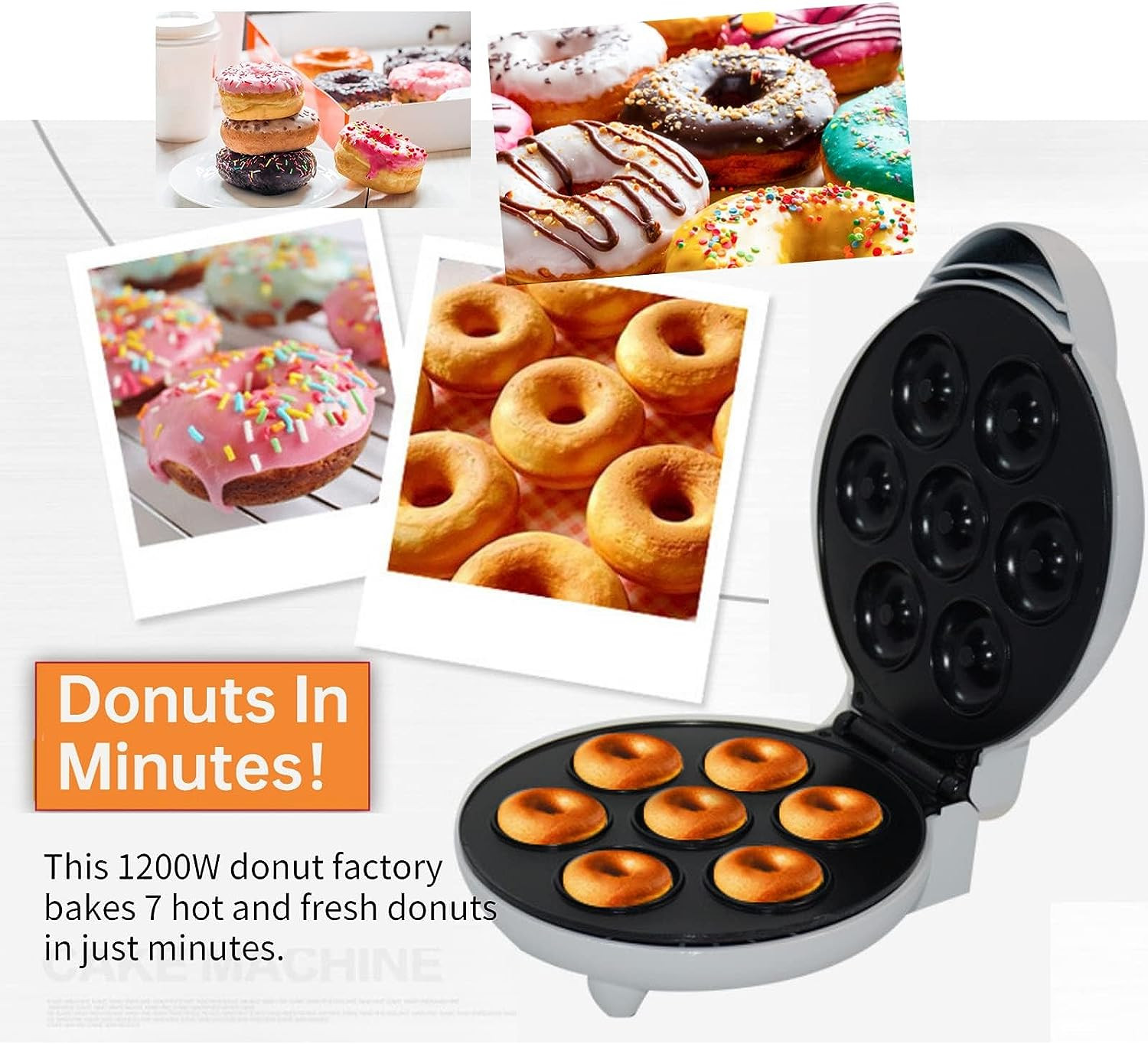 Mini máquina para hacer donas para desayuno, aperitivos, postres, con superficie antiadherente, hace 7 donas -Donas @@en cuestión de minutos: haz mini donas lindas y sabrosas en casa en poco tiempo, perfectas para aperitivos, entretenimiento y niños llenos de decoración. . . . . . . como quieras, las posibilidades son infinitas @@-Rápido y fácil: corto tiempo. Simplemente elige tu masa preferida, añade un poco de mantequilla y tapa