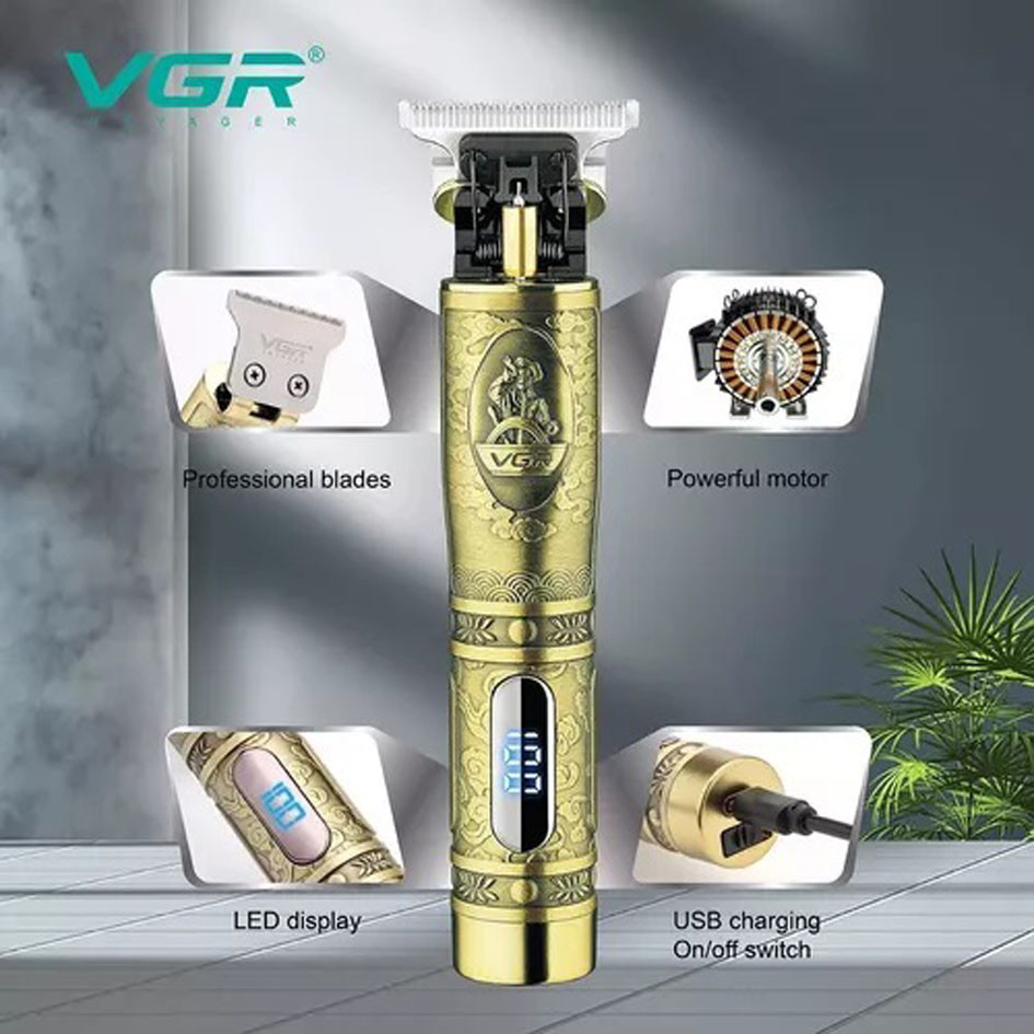 Máquina Patillera Barberia Vgr V-091 Recargable Dorada