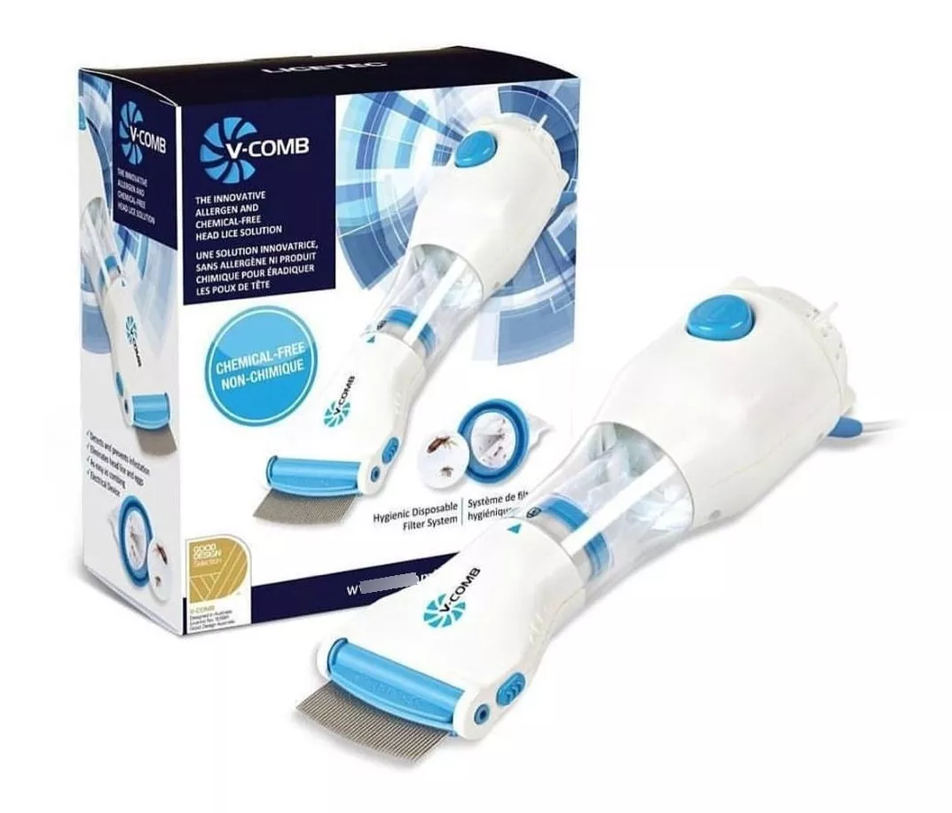 Mientras que otros tratamientos para piojos, como champús químicos y peines eléctricos, son más peligrosos para los niños pequeños y duros para la piel y el cuero cabelludo, el V-Comb ™ utiliza su peine de dientes de acero inoxidable redondeado de succión suave, para el levante de los piojos y los huevos.