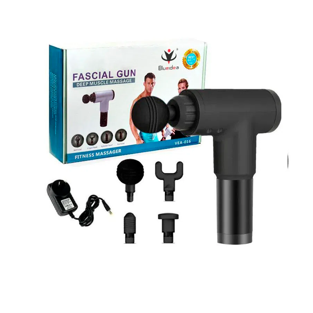 Descripción La pistola masajeadora Fascial Gun acompaña tu rutina. Ya sea en tus momentos de cuidado personal, o cuando te ejercitas. Es ideal para el calentamiento o el momento de relajación. Aplícalo en: piernas, glúteos, espalda, muñecas, pecho, tobillos.
