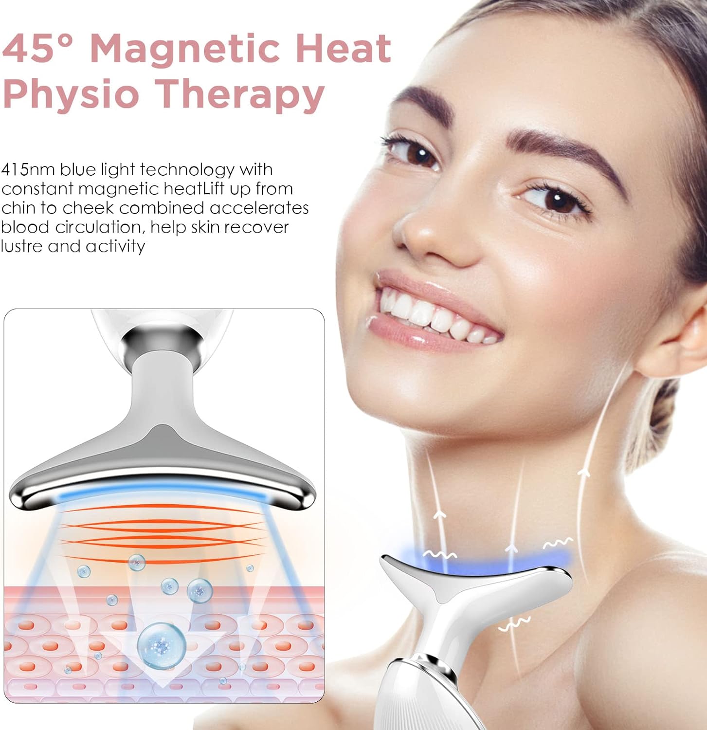 1. El masajeador de cuello tiene una función de calor. Calor magnético de 45 5 para calentar la piel, combinado con masaje 3D, promueve la absorción de productos para el cuidado de la piel. Combina 3 tipos de masaje de intensidad para eliminar la suciedad de la capa de la piel y retrasar el envejecimiento de la piel.