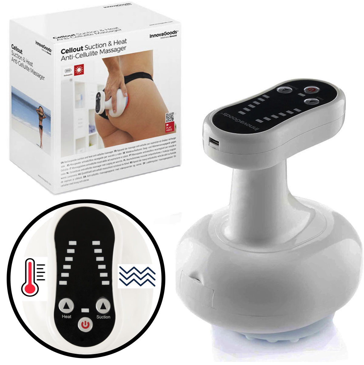 Un masajeador anticelulítico por succión y calor que puede ayudarte a combatir la celulitis y la flacidez. Su funcionamiento se basa en la técnica de la vacumterapia con efecto calor.