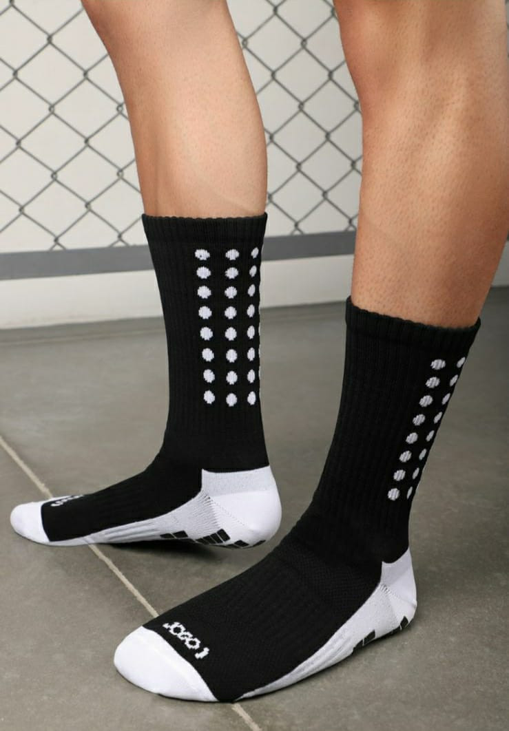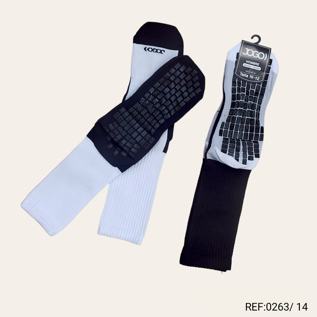 Media para entrenamiento deportivo, especialmente para fútbol,. Cuenta con tejido reforzado en la zona de las puntas y talones, brindando seguridad en cada pisada, cuenta con adhesión de material antideslizante en las plantas, ofreciendo agarre al calzado, brindando seguridad y comodidad en la practica deportiva.