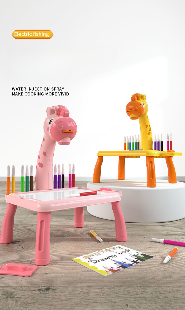 Permite a tu hijo expresarse de forma artística. Con esta mesa de dibujo puedes mejorar la creatividad e imaginación de tus niños, ayudando a que tenga ejercicios de la coordinación mano-ojo y color y mejorar La percepción. Es una mesa proyectora de dibujo para niños, con luz. Tiene proyector de alta calidad, apagado la luz, asi que enciende el proyector e inserta las diapositivas preimpresas. Proyecta una imagen que tu hijo pueda dibujar.