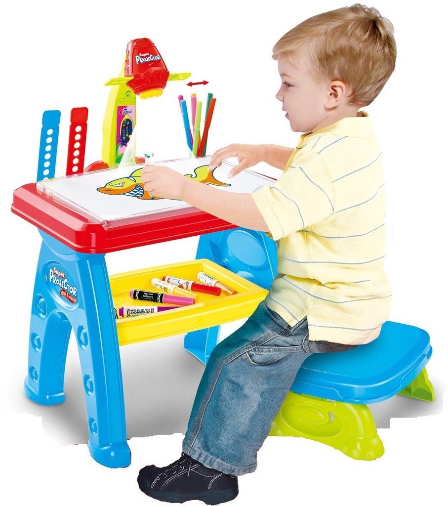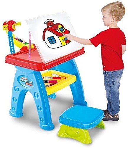 Regálale horas de diversión y entretenimiento sano a tu pequeño y a la vez que se estimula su desarrollo y creatividad. Esta Mesa de dibujo educativa con proyector incluye una silla banquito para que el niño esté más cómodo.