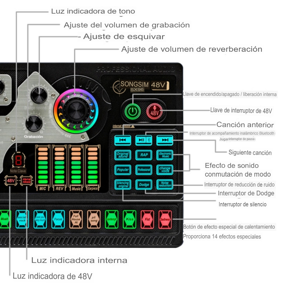 Tarjeta de Sonido de Micrófono Bluetooth Inalámbrico X5 48V Hifi Dispositivo de Grabación Profesional Mezclador de Audio de Audio luces RGB