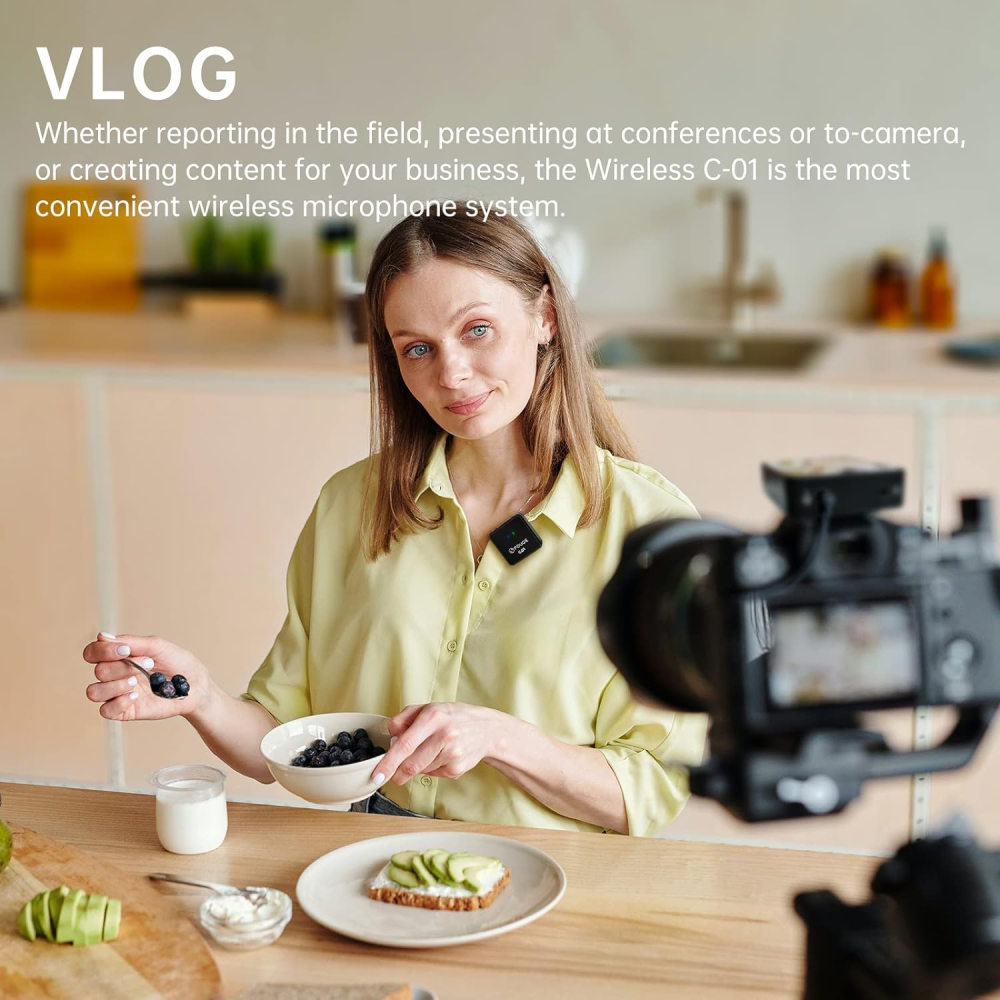 Amplias aplicaciones: El micrófono inalámbrico de solapa se puede utilizar para programas de transmisión en vivo o grabación en plataformas de terceros como Tiktok y Youtube. Se puede utilizar como micrófono para grabar varios vlogs y videos ASMR, así como podcasting o enseñanza en línea.