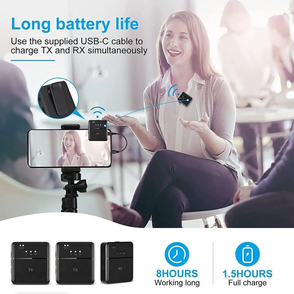 Usando la reducción de ruido inteligente DSP y la recogida de sonido omnidireccional de 360 grados, este micrófono lavalier puede brindarle una experiencia de grabación HiFi y clara.