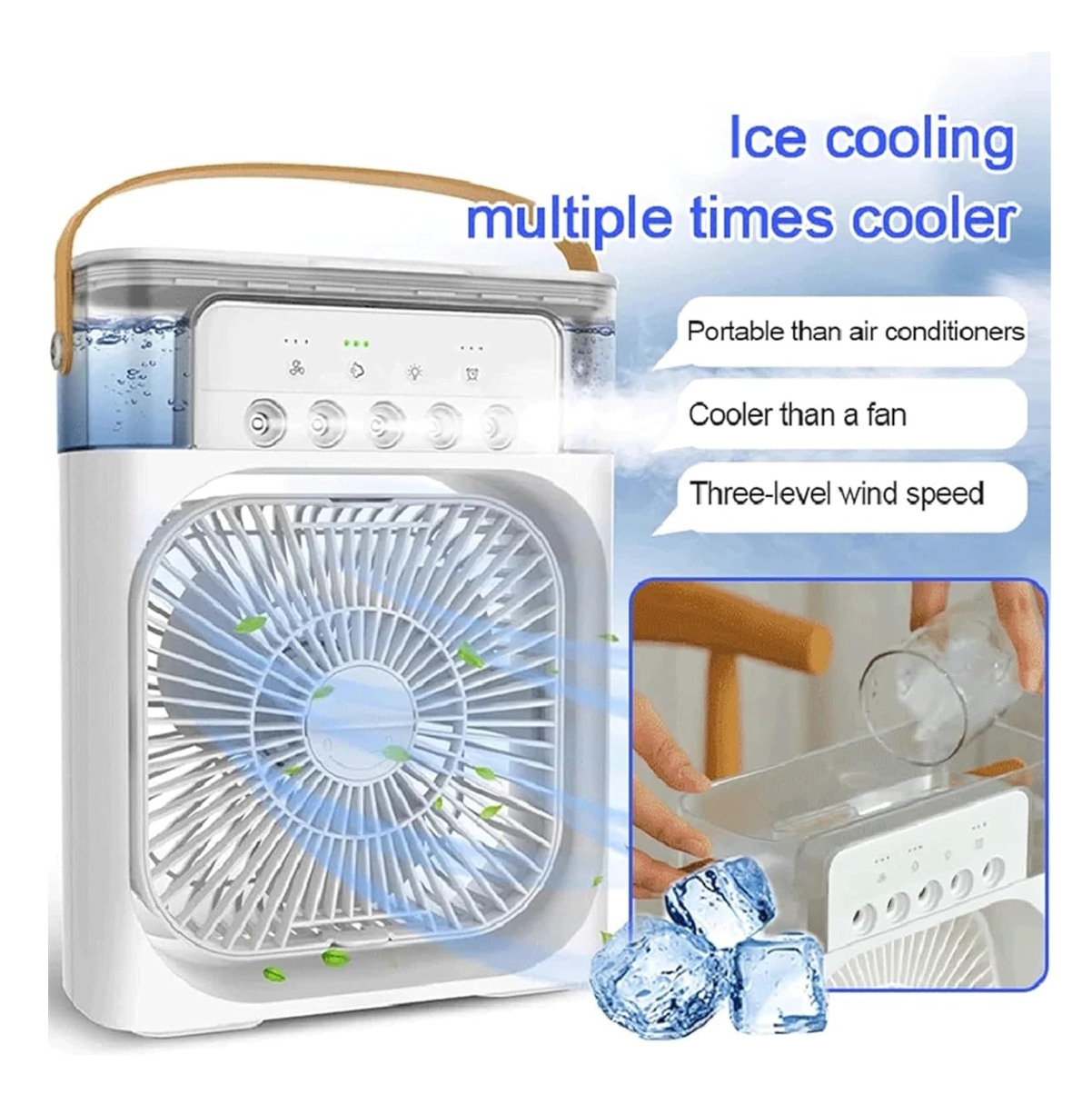 5 pulverizadores de gran calibre; Velocidad del viento de 3 velocidades; Ventilador grande mejorado de bajo ruido. Después de llenar el hielo y el agua en el tanque de agua, puede disfrutar del frío.