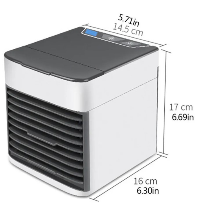 - Tamaño compacto. Arctic air es un enfriador de aire personal compacto. La lámpara tiene un ventilador silencioso con 3 modos de velocidad.