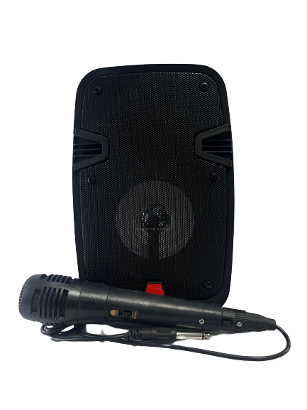- Parlante de 6.5″ con conexión Bluetooth, te permite reproducir música a través de tarjeta SD o USB, cuenta con salida Auxiliar y Radio FM, además incluye un micrófono alámbrico para hacer karaoke o perifoneo, ideal para negocios, casas, eventos pequeños y conferencias en salones