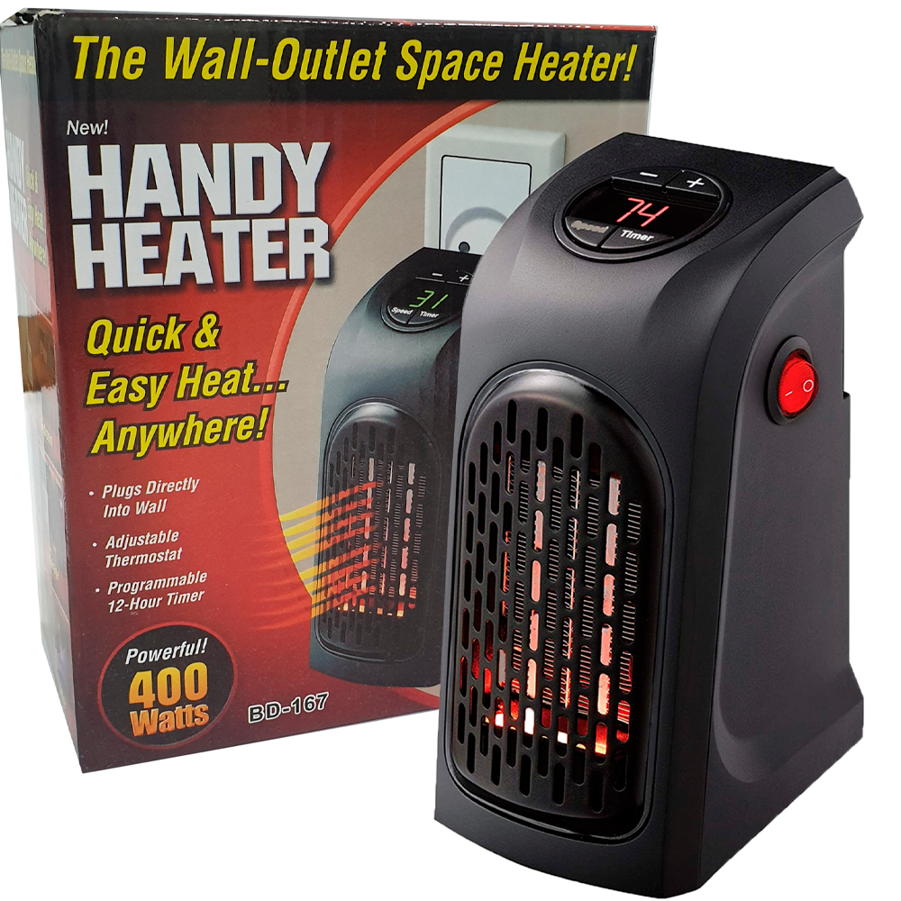 Caliente su hogar y ahorre dinero en su factura de calefacción con el calentador personal de 350 vatios Handy Space Heater, calentador portátil de enchufe de pared. Este calentador personal portátil es potente y pequeño, por lo que es el calentador perfecto para llevarlo a donde quiera que vaya. Con tecnología de doble calentador y ventilador, el calentador personal de 350 vatios Handy Space Heater, el calentador portátil de enchufe de pared se calienta rápidamente y la carcasa resistente al calor se mantiene fría al tacto. Con 350 vatios de alta potencia, el calentador personal puede calentar hasta 250 pies cuadrados, ¡lo que lo convierte en el calentador perfecto para viajes, oficinas, dormitorios y habitaciones! El Calentador personal de 350 vatios Handy Space Heater,