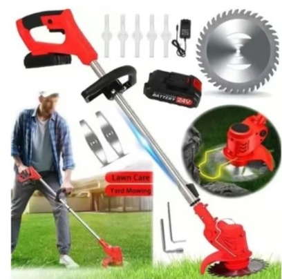 Accesorios incluidos: 2x Baterías 48v Artículos incluidos: 1x disco metálico con dientes 1x disco metálico de 2 puntas 4 cuchillas de plástico 2 pilas de 48 V 1 cargador Bivolt (100/220 V)