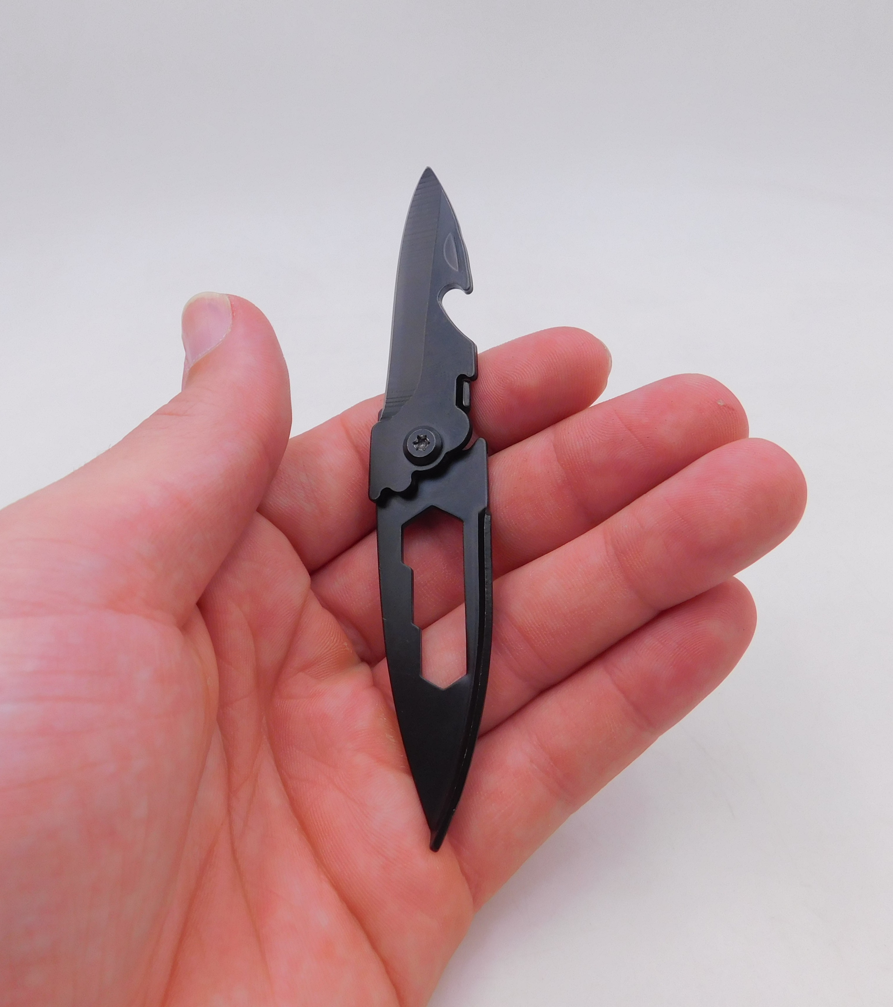 - Función: cuchillo afilado, llave hexagonal, abrebotellas, llavero.