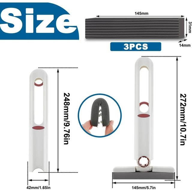 Mini limpiador Lavable a mano, limpieza de escritorio con 3 mopas, para ventana, suelo, pared, azulejos, escritorio de coche de madera dura
