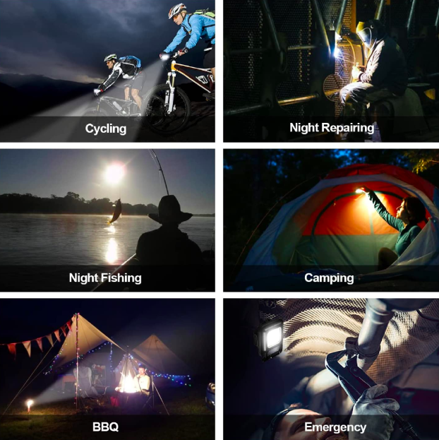 Uso Exterior: linterna portátil con llavero, soporte plegable, sacacorchos y soporte magnético. Se utiliza para pesca, senderismo y camping, sacacorchos, mantenimiento de carretera de emergencia o trabajo multifunción, etc.