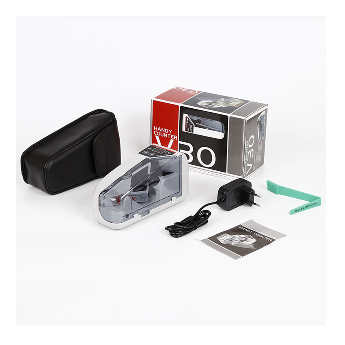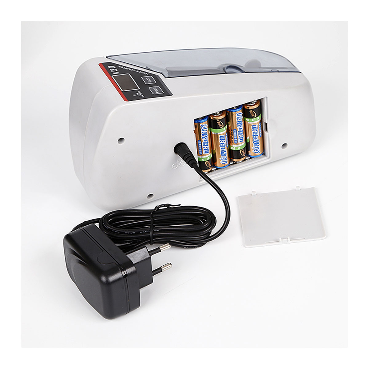 Cuenta 100 billetes viejos en tan solo 7 segundos. Llenado de bandeja 150 billetes nuevos y 120 billetes viejos. Indicador consecutivo sin borrar la memoria hasta 999. Indicador de error en la pantalla de led. 0% margen de error al contar. Rendimiento de la batería alcalinas AA (no incluidas) hasta 150.000 billetes. Entrada AC 6v para uso de (transformador 110V incluido) Dimensiones, 190mm x 102mm x 75mm Peso 450 Gramos