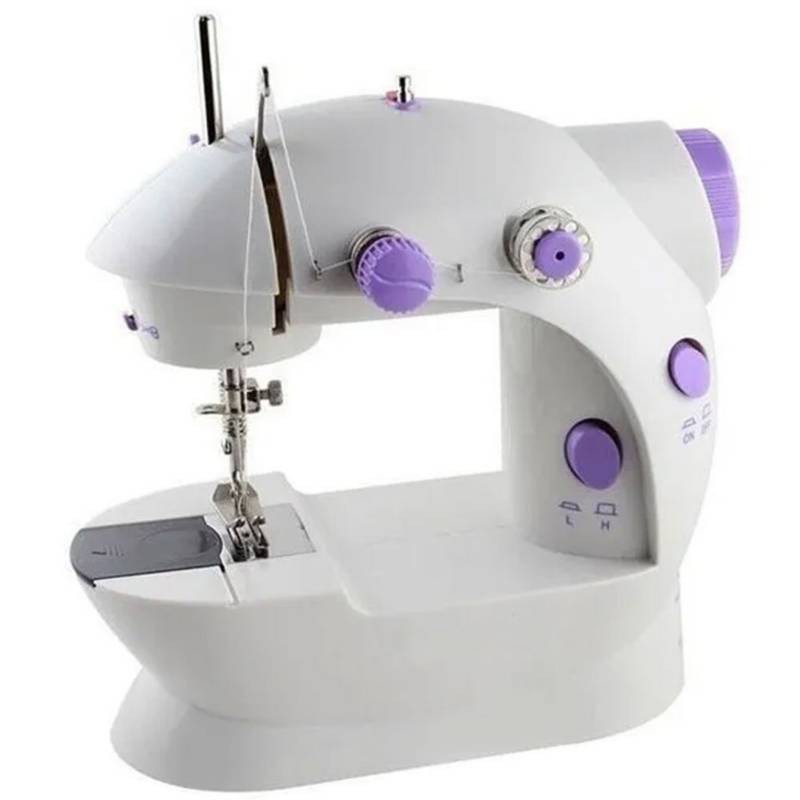 Mini maquina de coser de 2 velocidades, perfecto control de puntada, switch de mano o pedal de pie, de fácil costura, adelanta tela automáticamente, incluye 4 bobinas y un pedal de pie, compacta.