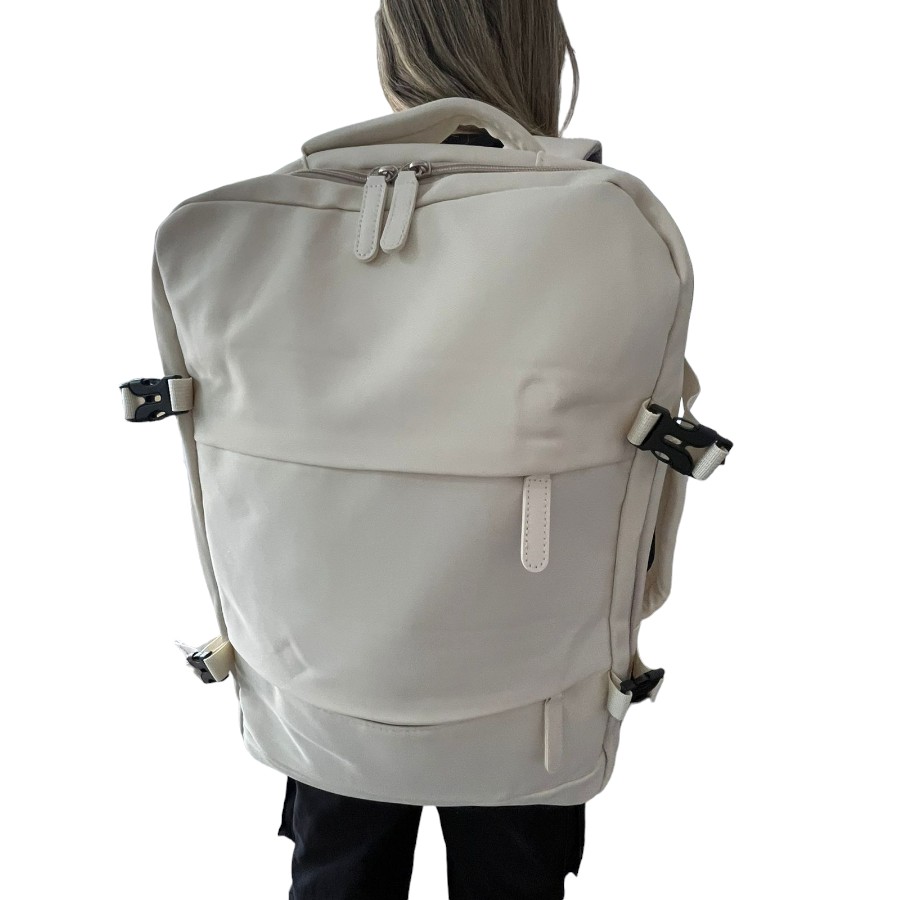 Imprescindible para viaje: esta bolsa de viaje tiene un compartimento para ropa que puede contener la ropa que necesitas para un viaje de fin de semana. También se puede utilizar como una mochila de trabajo para guardar artículos necesarios para el trabajo de oficina. Como un elemento esencial de viaje, esta mochila tiene correas de carrito de equipaje en la parte posterior para que puedas fijar la mochila a tu carrito de equipaje para facilitar tu viaje. La parte posterior de la mochila tiene una hebilla en el pecho, además del acolchado de espuma que ralentizará tu estrés mientras viajas.