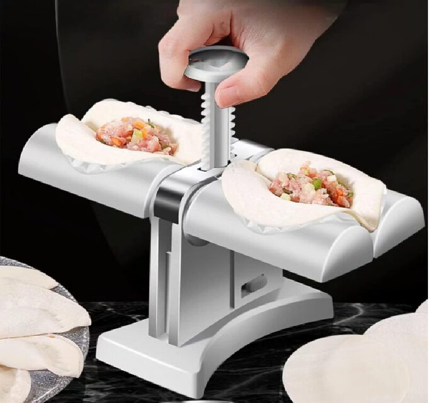 Maravillosa herramienta de cocina: La máquina de empanadas adopta el último diseño de doble cabeza, que puede envolver dos a la vez para empanadas rápidas. Ahorra tiempo mejor que las herramientas de empanadas normales.