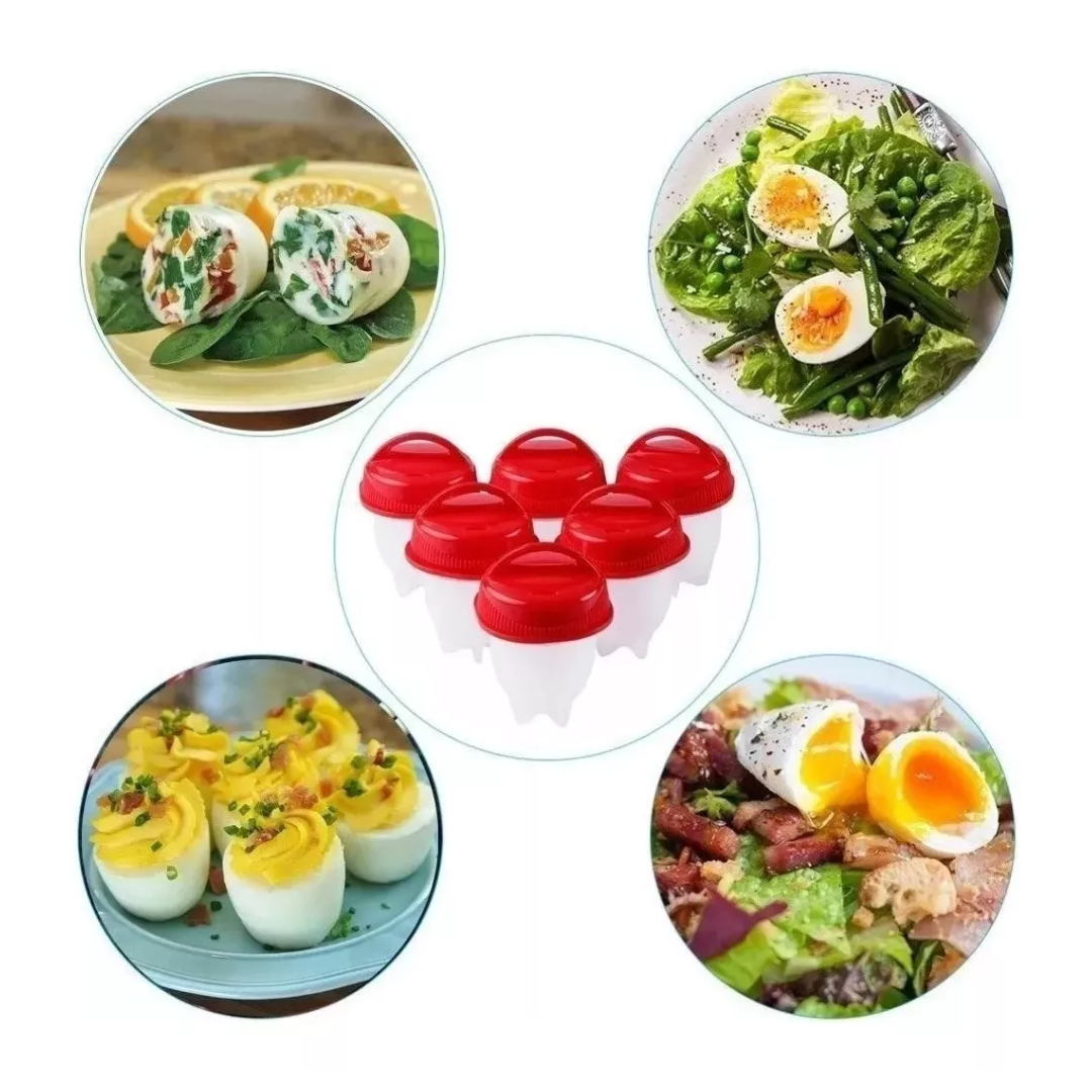 Están fabricados con silicona de grado alimentario, que es segura y resistente al calor esto garantiza que los moldes sean seguros para su uso en agua hirviendo cada molde tiene una forma específica para cocinar huevos.