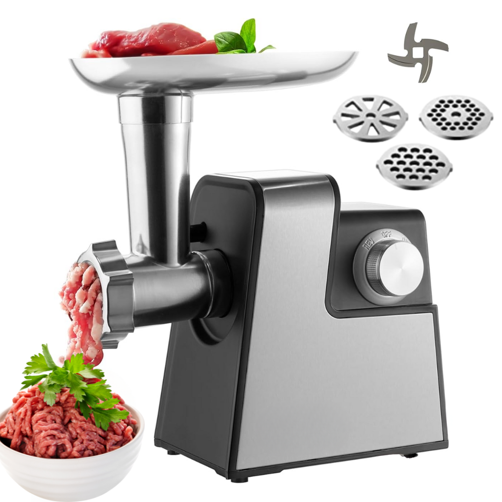 Opciones de corte versátiles: equipada con 3 placas de corte diferentes en tamaños esta máquina picadora de carne ofrece opciones versátiles para moler carne de acuerdo con tu textura y sabor deseados.