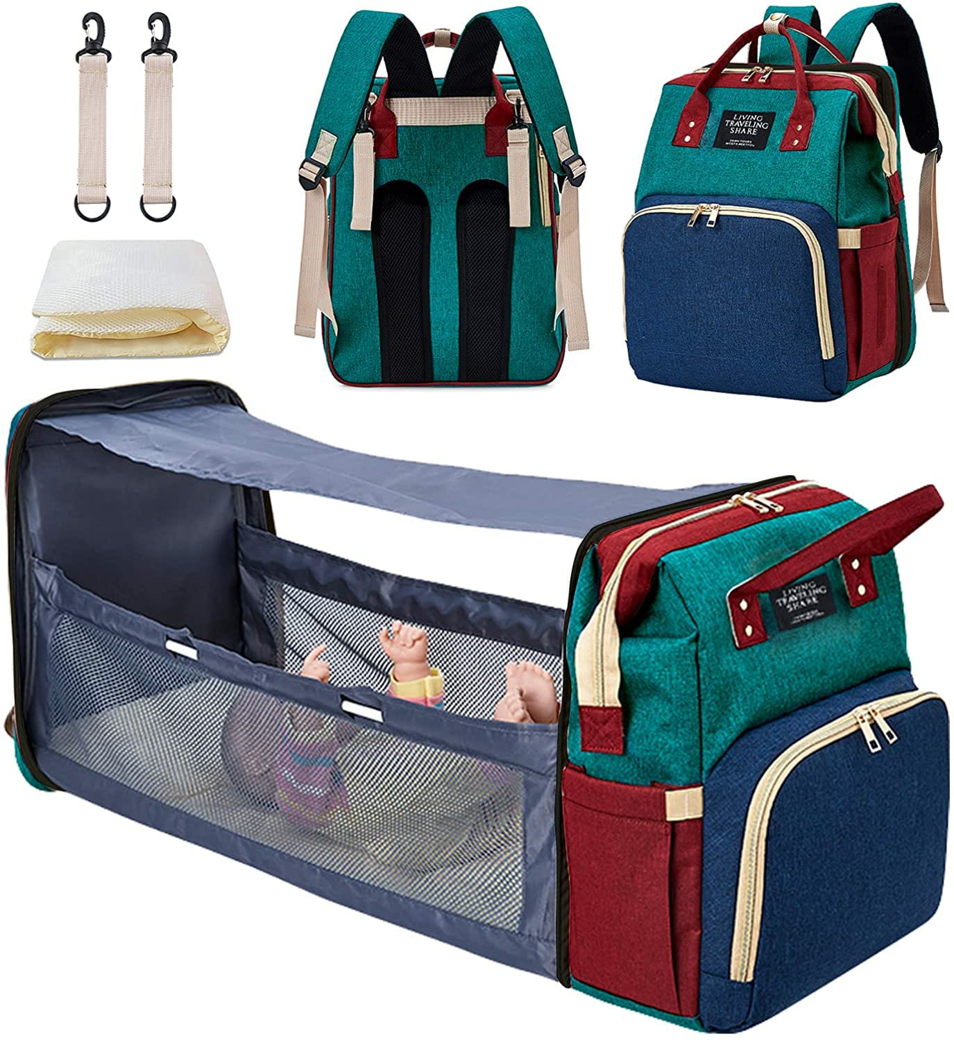 -El bolsillo interior grande incluye compartimientos de almacenaje individualizados y bolsillos cerrados para organizar con seguridad los juguetes del bebé, los paños,la ropa y más.