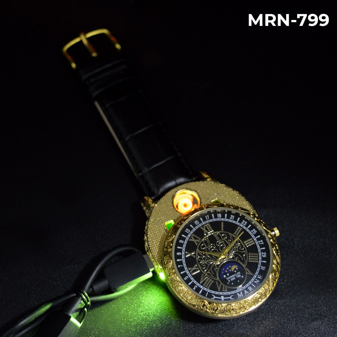 Lo que distingue a este reloj es su función secreta: 🤫 al deslizar hacia abajo la parte superior de la caja, se revela un compartimento oculto. En su interior, en lugar de esperar encontrar el típico mecanismo de funcionamiento del reloj, descubres un ingenioso encendedor 🔥, el cual se encuentra integrado de manera discreta e innovadora en el diseño de la caja