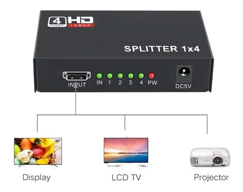 1×4 convertidor divisor compatible con HDMI 1 In 4 Out HD 1,4 amplificador divisor HDCP 1080P pantalla Dual para HDTV DVD PS3 Xbox