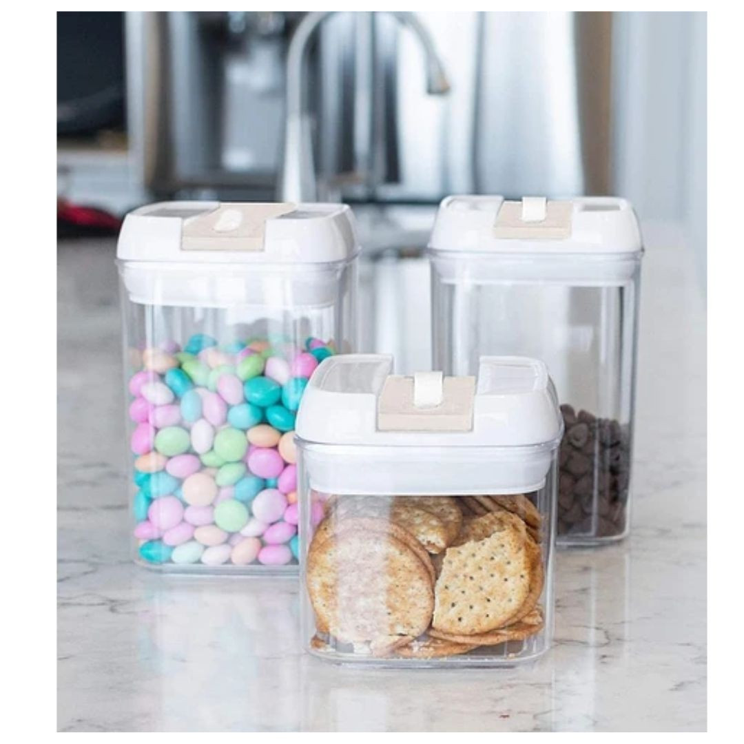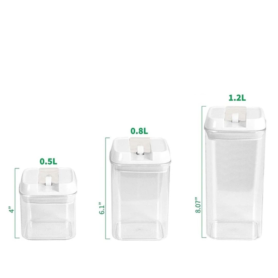 Estos recipientes cuadrados duraderos han sido diseñados para minimizar el espacio, son apilables y caben fácilmente en su refrigerador, congelador o alacena, lo que le permite organizar la cocina. Estos recipientes transparentes también son fáciles de limpiar. No sólo son ideales para almacenar alimentos secos, sino que también son para contener agua, jugo, sopa y más.