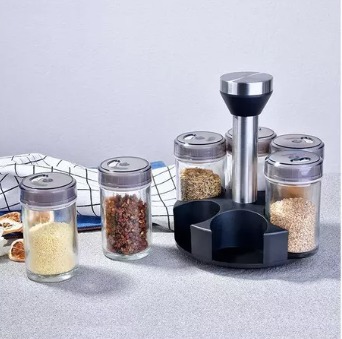 •Gran capacidad: soporte de diseño giratorio, 6 botellas de condimentos, que satisfacen la mayoría de las necesidades de la cocina.
