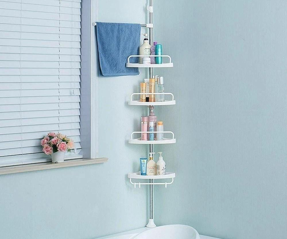 Estantería de Esquina para Ducha telescópica Cromado con 4 estantes Blanca