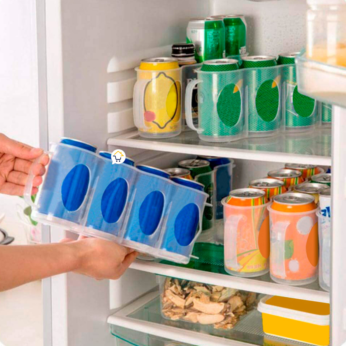 - Es ideal para ahorrar espacio en el refrigerador y una manera muy eficaz de ordenar tus latas de bebidas.