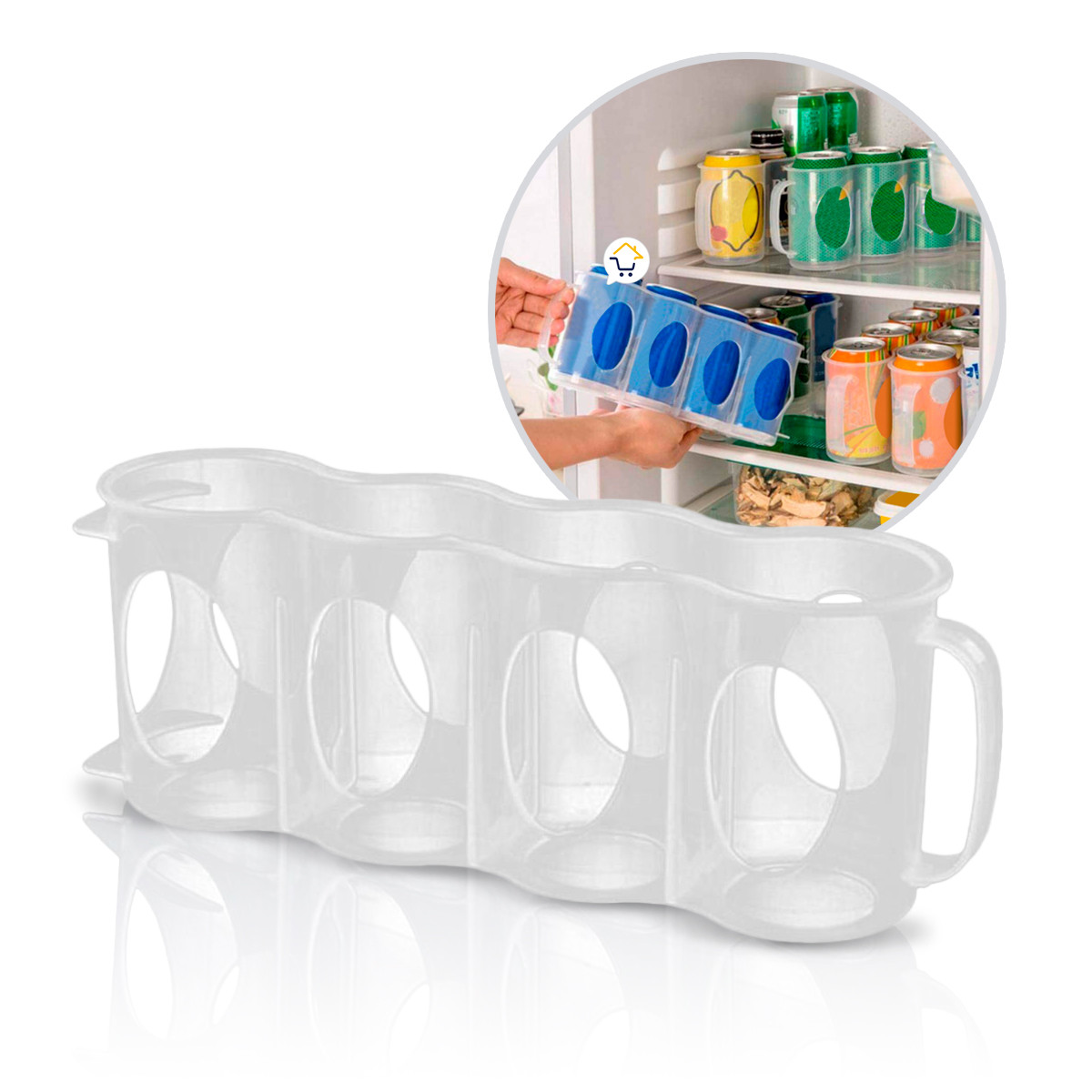 - 1 Organizador para 4 latas de bebida.