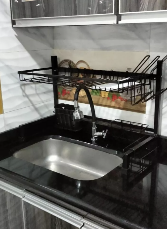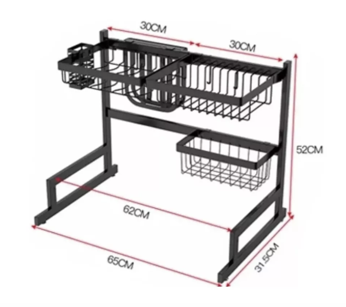2 marcos de apoyo, 4 barras cruzadas, 1 estante de almacenamiento de platos, 1 estante de almacenamiento de arroz, 1 cesta de frutas y verduras, 1 cesta colgante para agentes de limpieza, 1 soporte para palillos, 1 estante para tabla de cortar y 1 juego de accesorios.