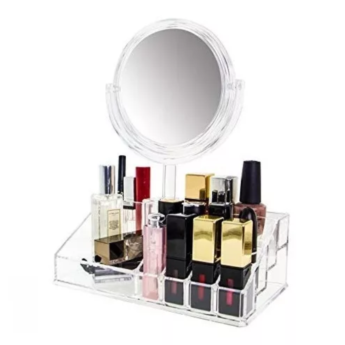 Elegante y duradero soporte para maquillaje transparente: Organiza todo tu maquillaje, cosméticos y accesorios en un deslumbrante mostrador de belleza personalizado o pantalla con un elegante soporte de cosméticos.